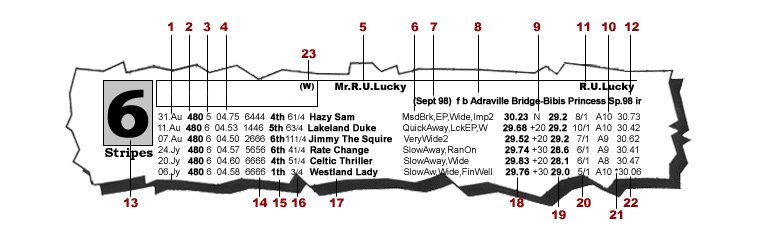 You can find more details i.e. name, age, race history, owners and trainers name in a booklet produced at each event, known as the “RACECARD”.